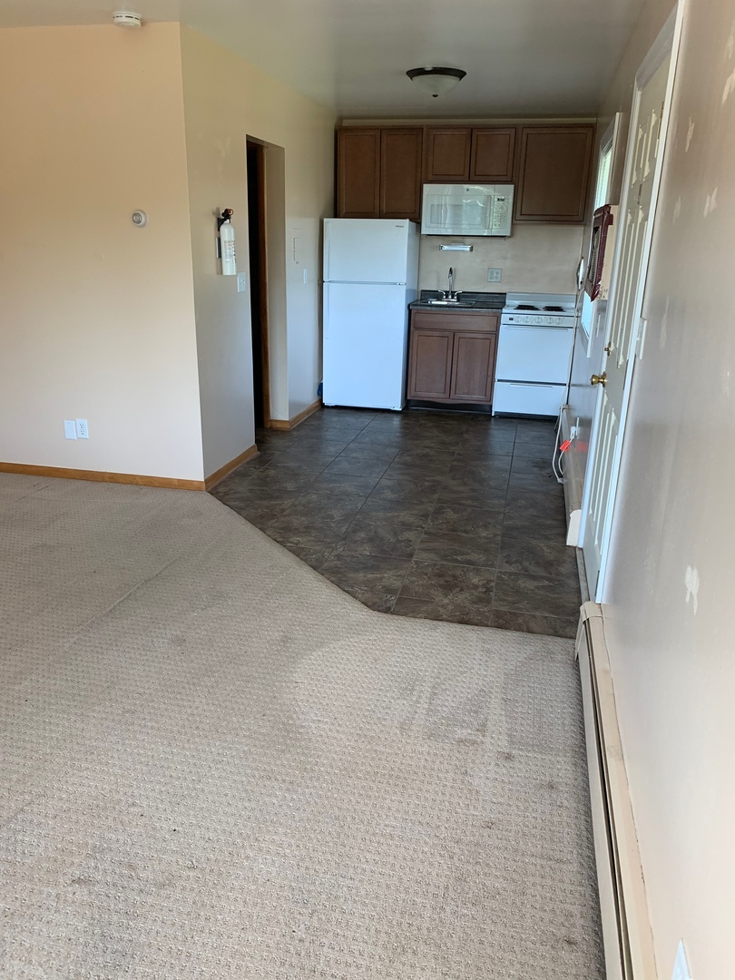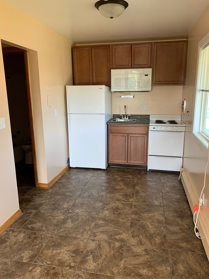 Newer updates on this spacious efficiency apartment. The cabinets have been replaced along with windows and flooring. There is a full kitchen with a full sized refridgerator, single sink, and 4 burner range with oven. The landlord pays for the water, sewer, garbage, and heat. The tenant pays for electricity. There is a wall AC unit. Seperate private entrance to the unit with a covered veranda. On-site coin operated laundry with an additional storage area.