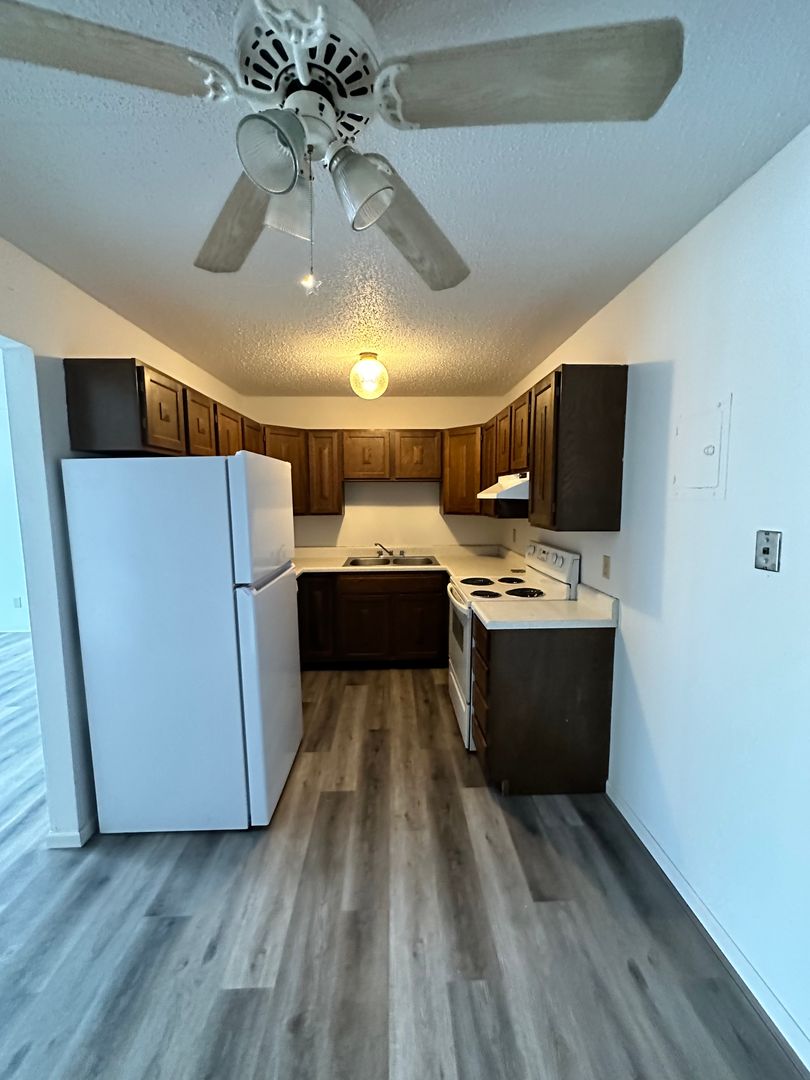 Upper level 2-bedroom, 1 bathroom apartment located close to schools, gas stations, and main arterial roads. Off street parking with plug-in and a balcony. Coin operated laundry can be found on the ground floor. Tenant is responsible for they own electricity. Owner pays for water, sewer, and garbage. Unfortunately, this unit is NOT pet or felon friendly.