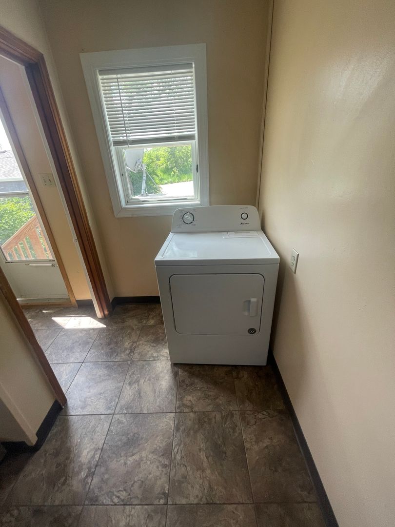 2 bedroom, 1 bathroom upper level duplex in downtown Mandan. Large 1 stall garage, laundry hookups, front deck, and nice back yard! Tenant pays for electricity and heat, Owner pays water, sewer, and garbage.